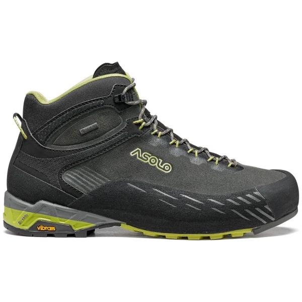 It presents a water-resistant suede upper and the Gore-Tex Extended Comfort Footwear lining which guarantees waterproofness and breathability. The mono-density thermoformed Eva midsole guarantees the best support, stability and cushioning. The Asolo/Vibram AG outsole features a self-cleaning design and excellent climbing area, it also uses the MegaGrip compound which offers excellent grip in dry and wet terrain. To complete the model the Pu rand all-around for additional protection, the cordon lacing system and the thermo-shaped toungue for a fast and precise fit.