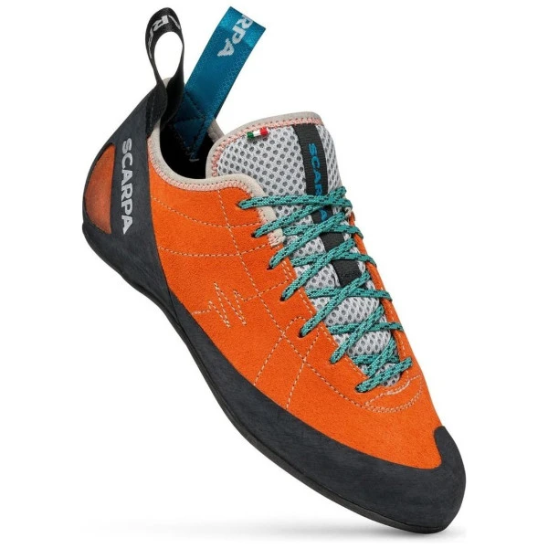 De Scarpa Helix is een klassieker bij Scarpa! De schoen is gemaakt voor comfort met een vrijwel vlakke zool en bijna symmetrisch vorm. Dankzij de vetersluiting kan de pasvorm aan iedere voet aangepast worden. De Scarpa Helix is geschikt voor vele toepassingen. Van beginners die de relaxte vorm waarderen, via gevorderde klimmers in lange multi pitch routes tot en met berggidsen die de hele dag klanten moeten begeleiden. De Helix is echter niet geschikt voor het boulderen.